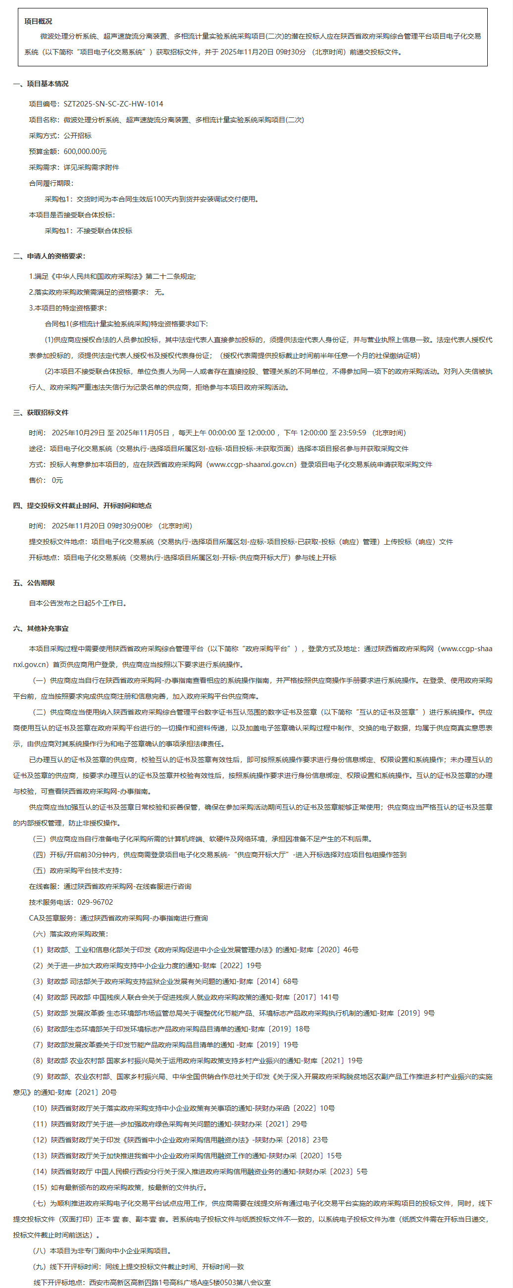 西安石油大学微波处理分析系统、超声速旋流分离装置、多相流计量实验系统采购项目(二次)招标公告