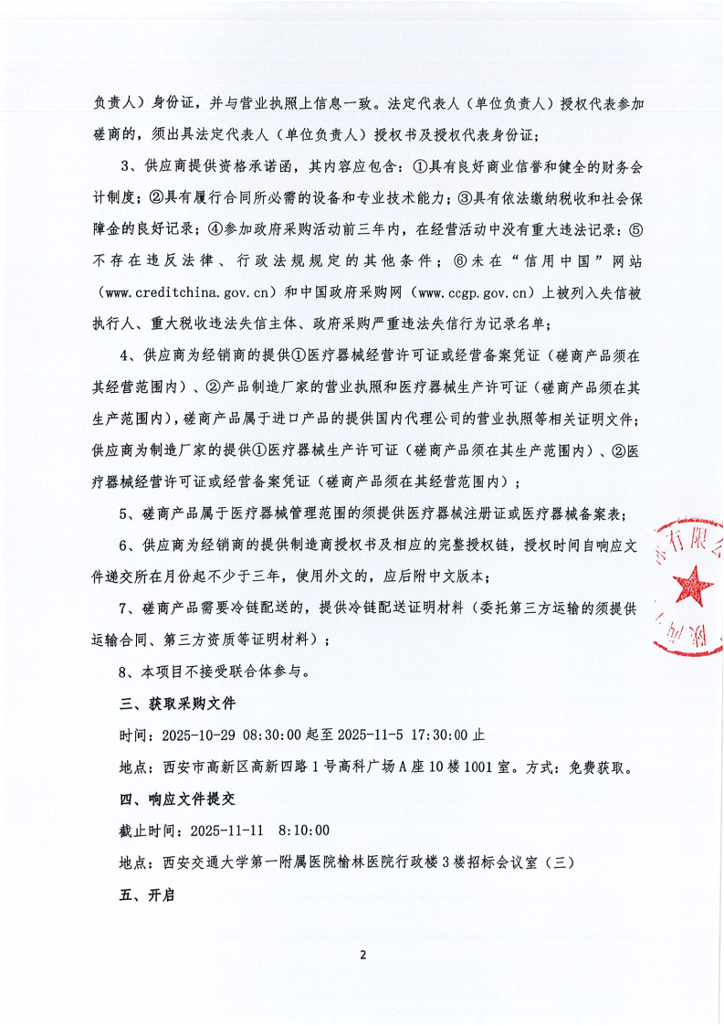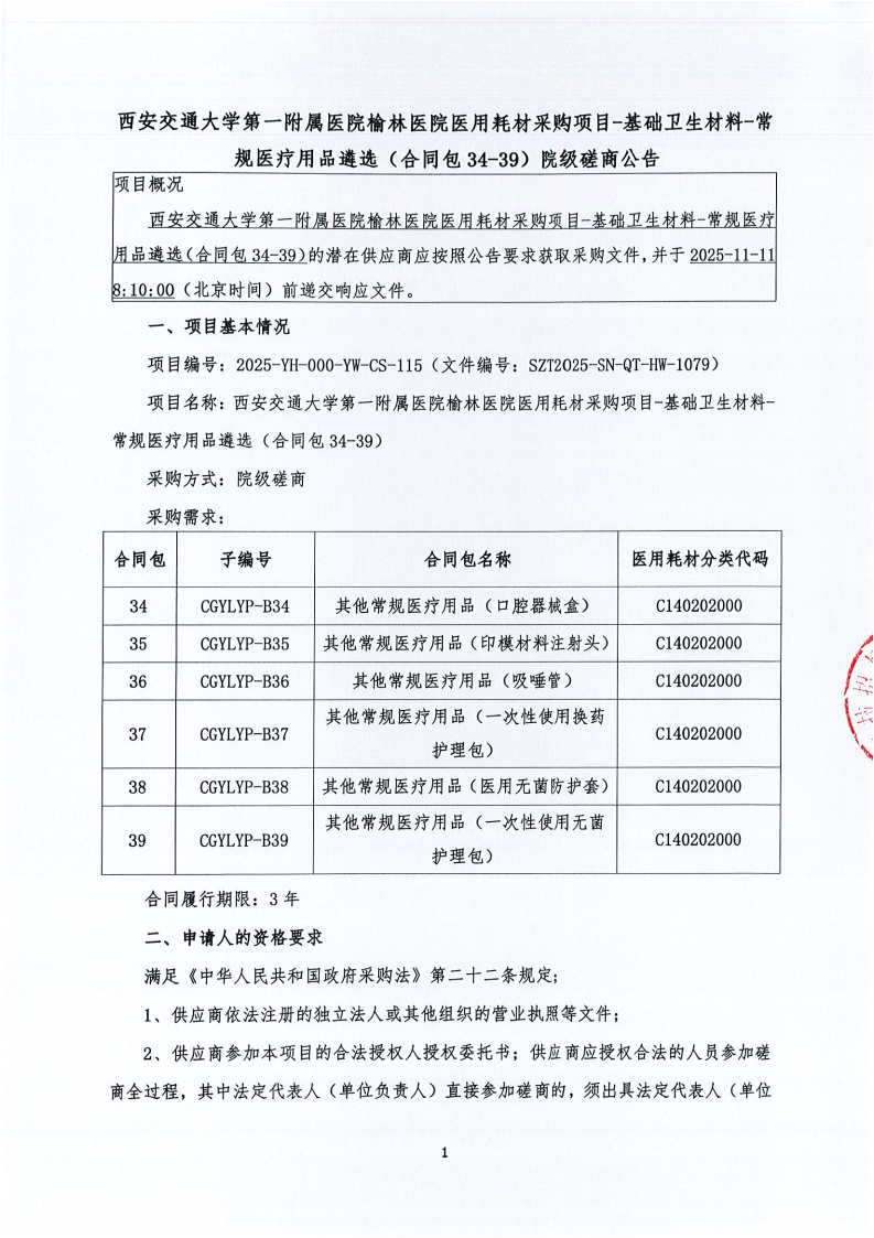 西安交通大学第一附属医院榆林医院医用耗材采购项目-基础卫生材料-常规医疗用品遴选(合同包34-39)院级磋商公告
