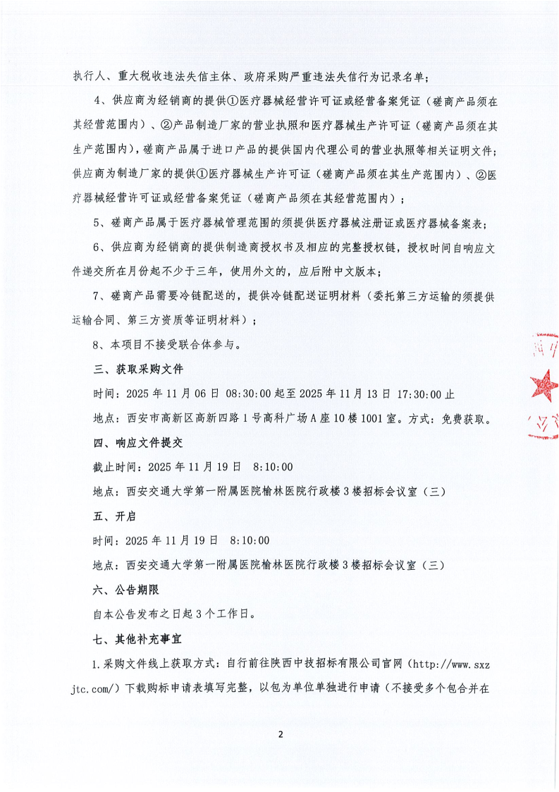 西安交通大学第一附属医院榆林医院医用耗材采购项目-基础卫生材料-导管、引流装置遴选(合同包7-12)院级磋商公告