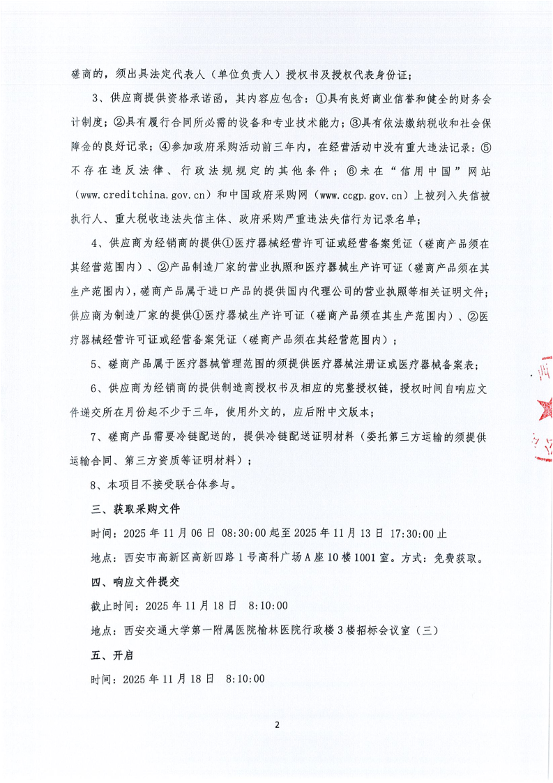 西安交通大学第一附属医院榆林医院医用耗材采购项目-基础卫生材料-高频电刀遴选(合同包1-2)院级磋商公告