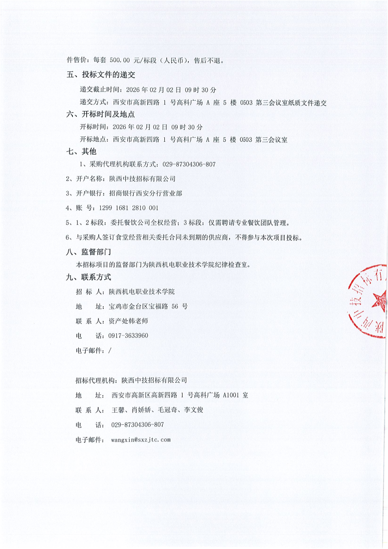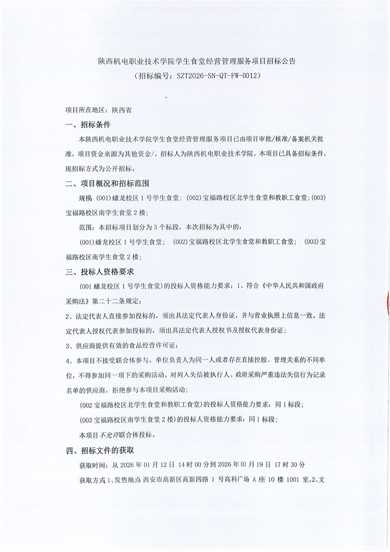陕西机电职业技术学院学生食堂经营管理服务项目招标公告