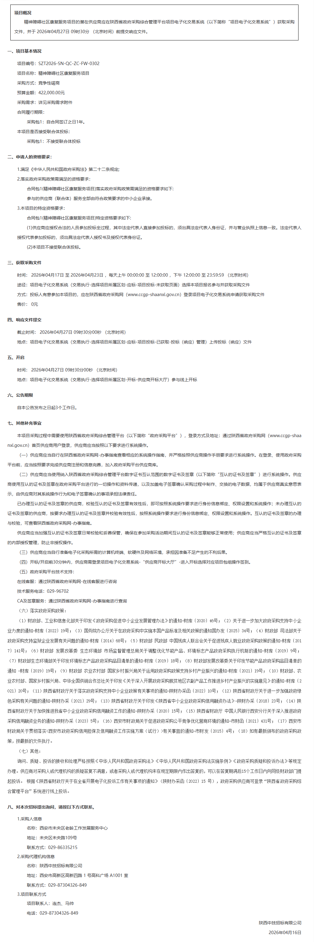 西安市未央区老龄工作发展服务中心精神障碍社区康复服务项目竞争性磋商公告