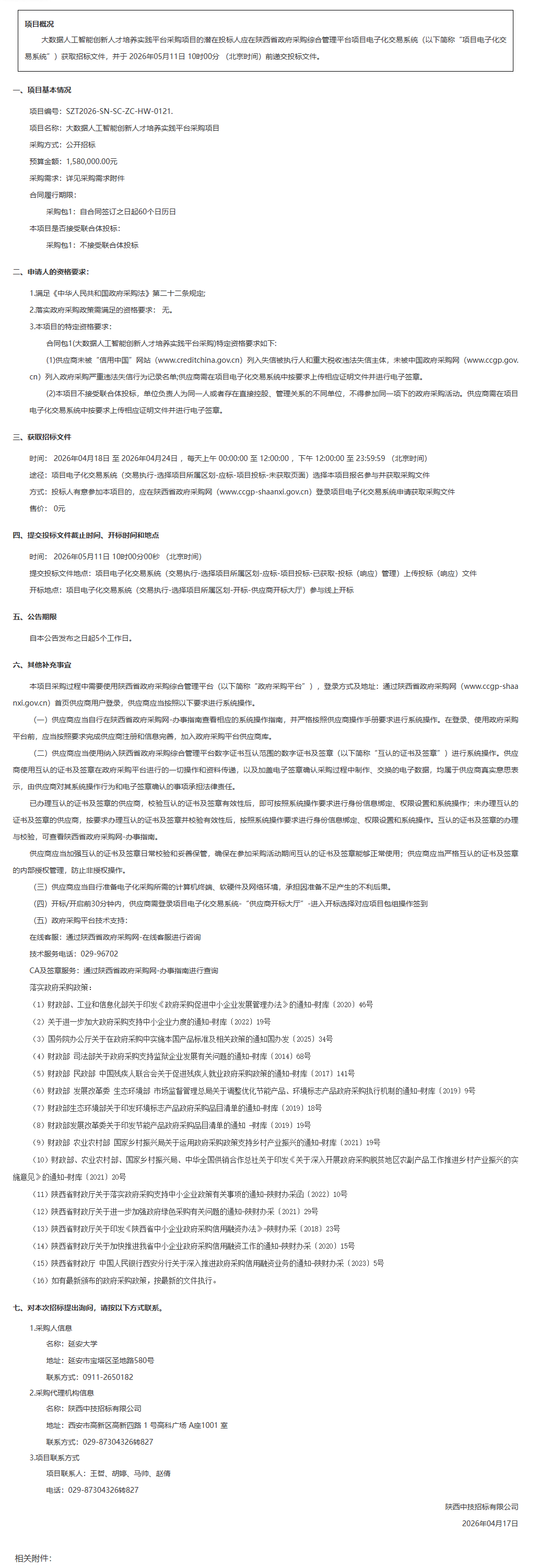 延安大学大数据人工智能创新人才培养实践平台采购项目招标公告