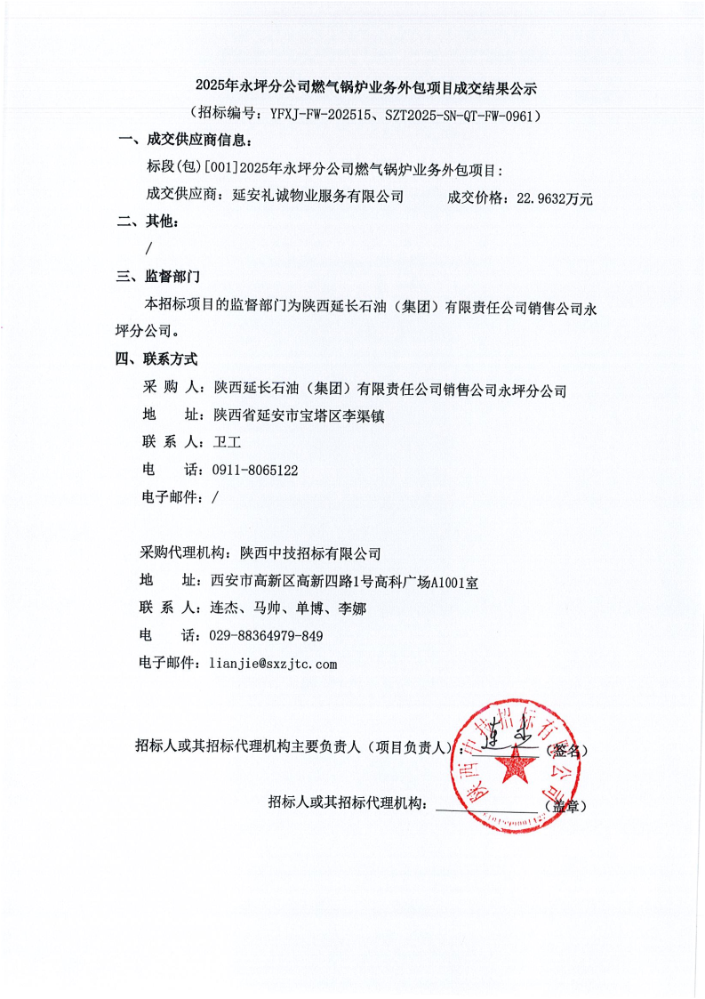 2025年永坪分公司燃气锅炉业务外包项目成交结果公示