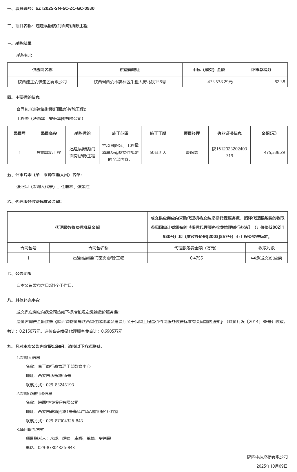 省工商行政管理干部教育中心违建临街楼(门面房)拆除工程中标(成交)结果公告