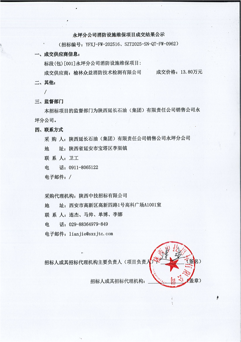 永坪分公司1号储罐区泡沫中心更换水成膜泡沫液项目成交结果公示