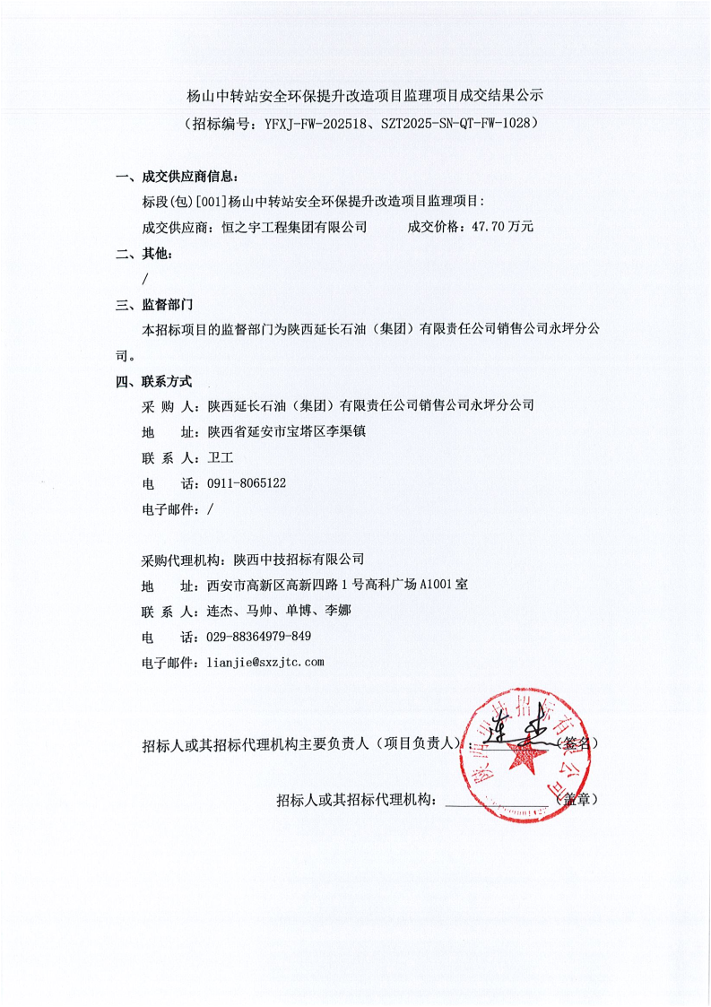 杨山中转站安全环保提升改造项目监理项目成交结果公示