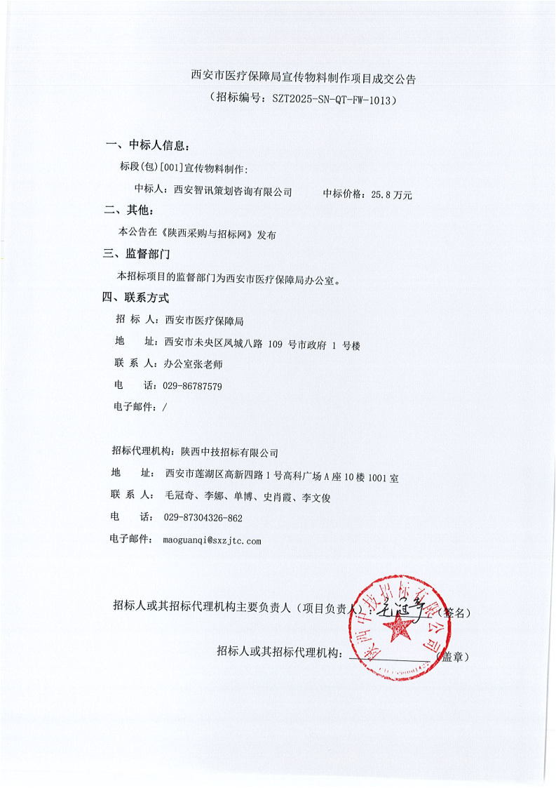 西安市医疗保障局公交车厢广告发布项目成交公告