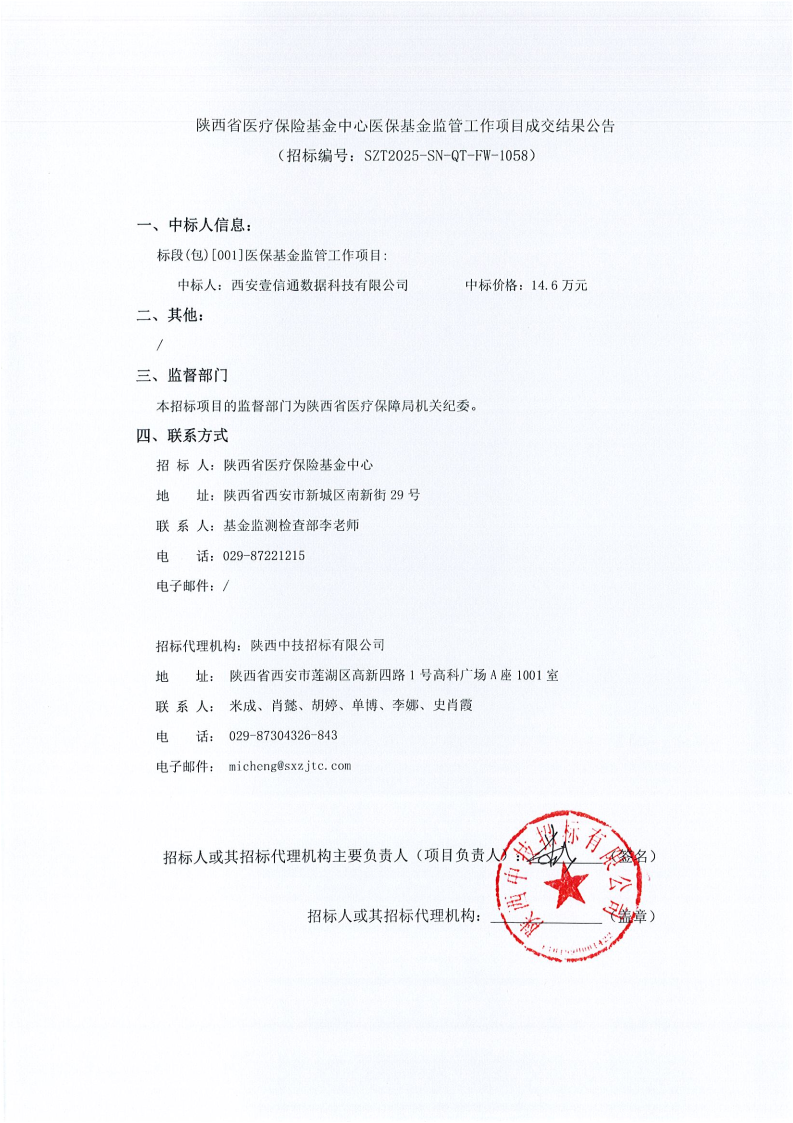 陕西省医疗保险基金中心医保基金监管工作项目成交结果公告