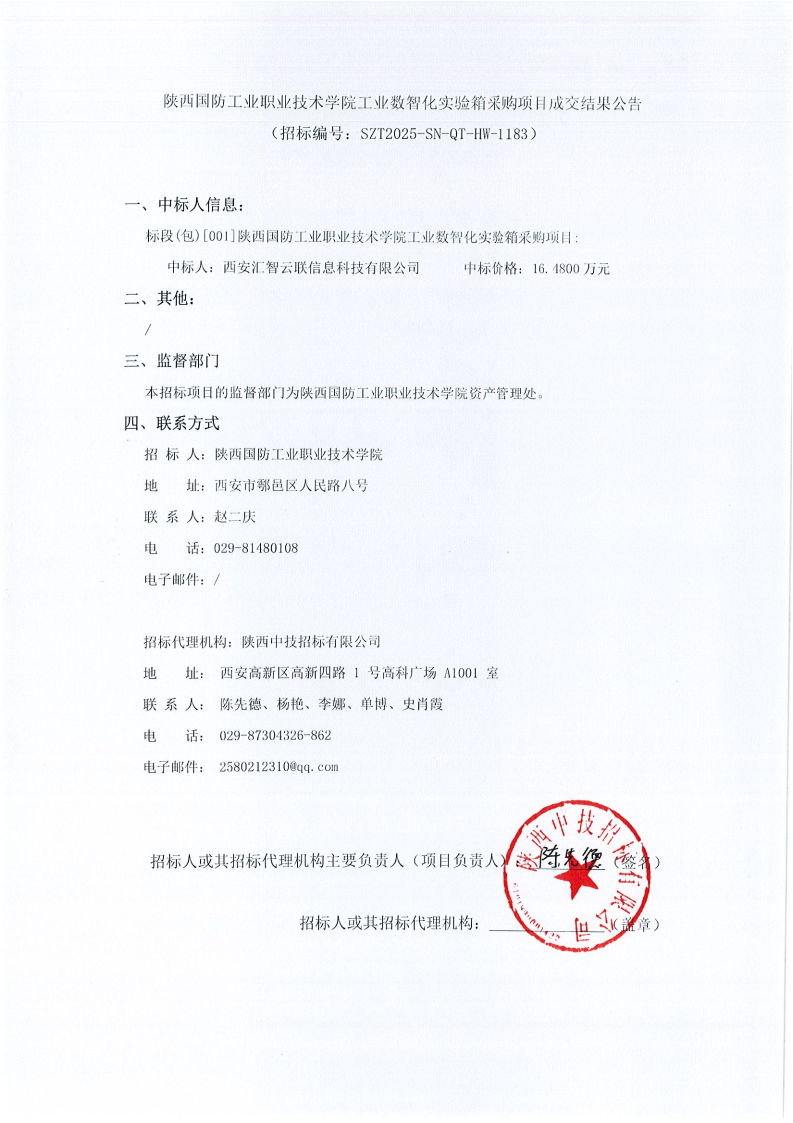 陕西国防工业职业技术学院工业数智化实验箱采购项目成交结果公告