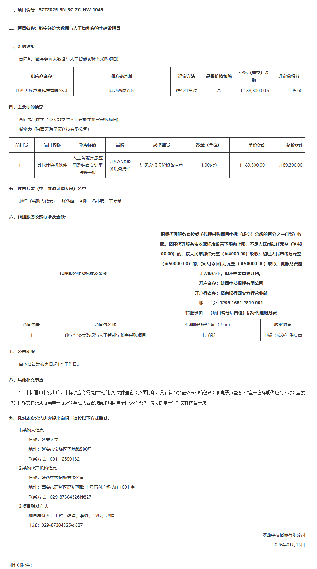 延安大学数字经济大数据与人工智能实验室建设项目中标(成交)结果公告