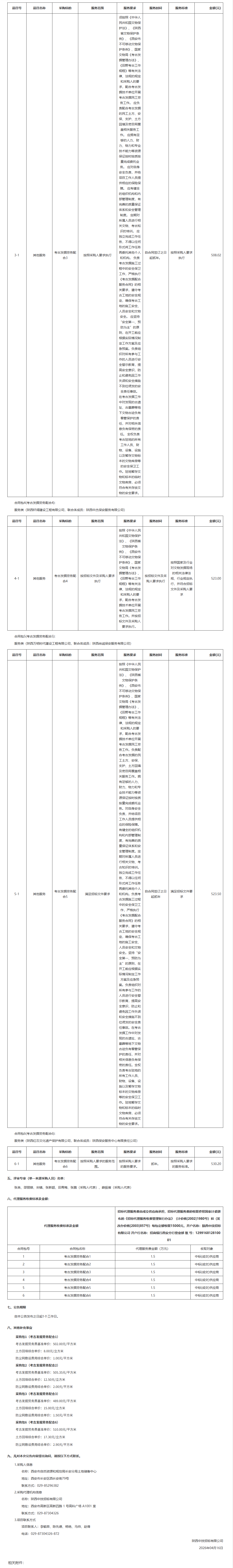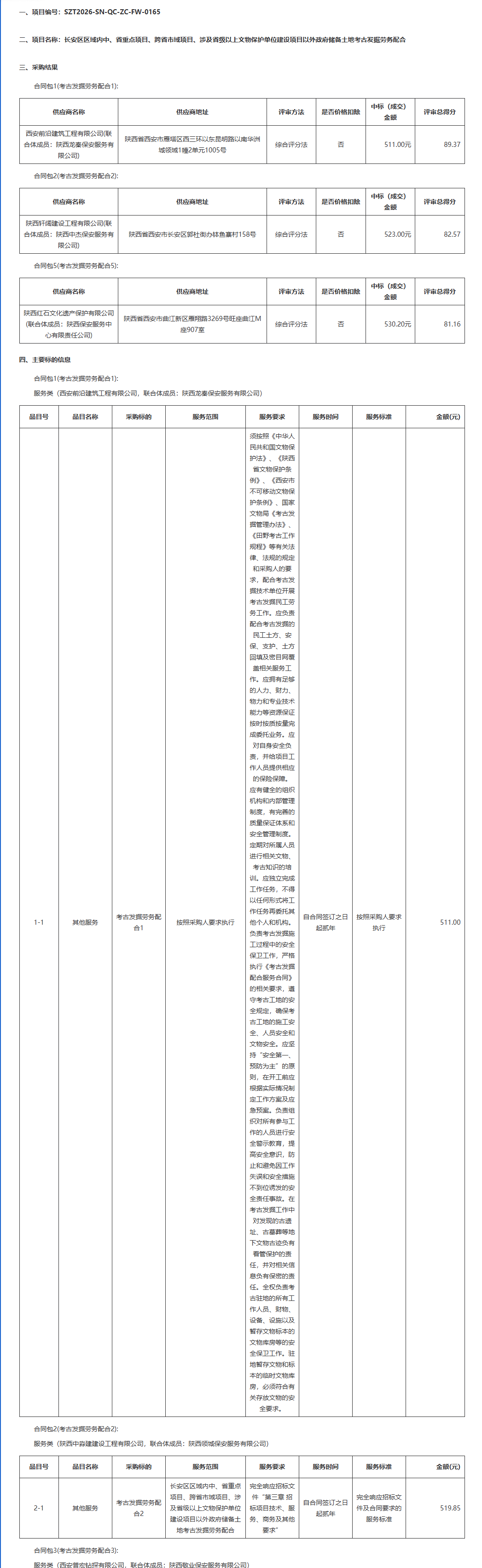 西安市自然资源和规划局长安分局土地储备中心长安区区域内中、省重点项目、跨省市域项目、涉及省级以上文物保护单位建设项目以外政府储备土地考古发掘劳务配合中标(成交)结果公告