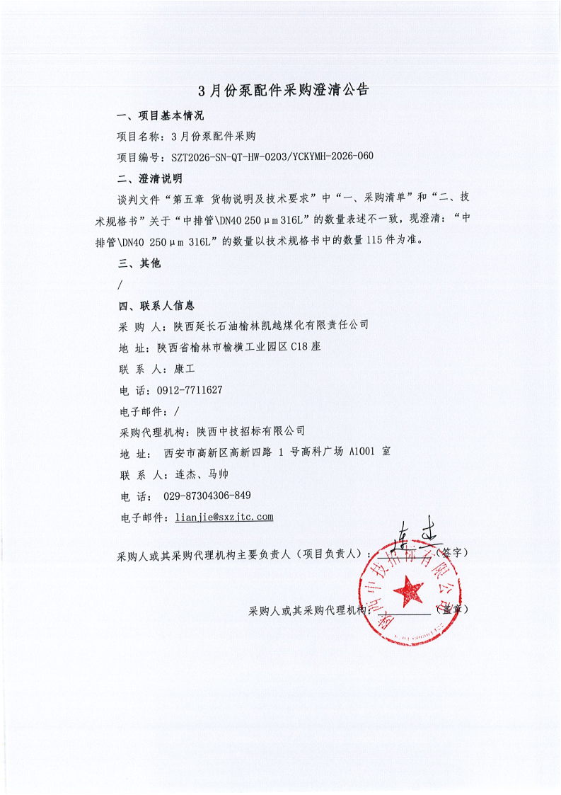 3月份泵配件采购澄清公告