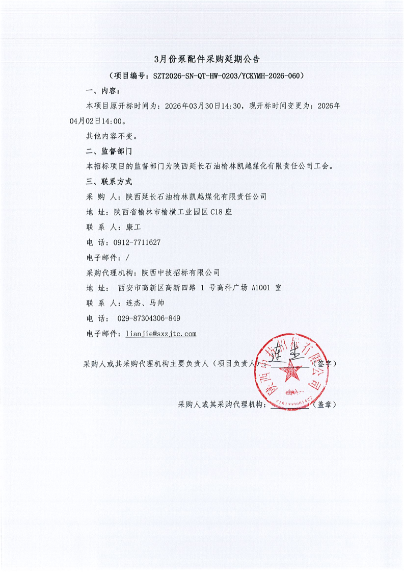 3月份泵配件采购延期公告