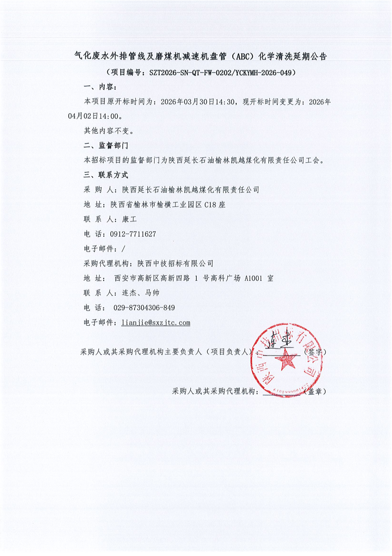 气化废水外排管线及磨煤机减速机盘管(ABC)化学清洗延期公告