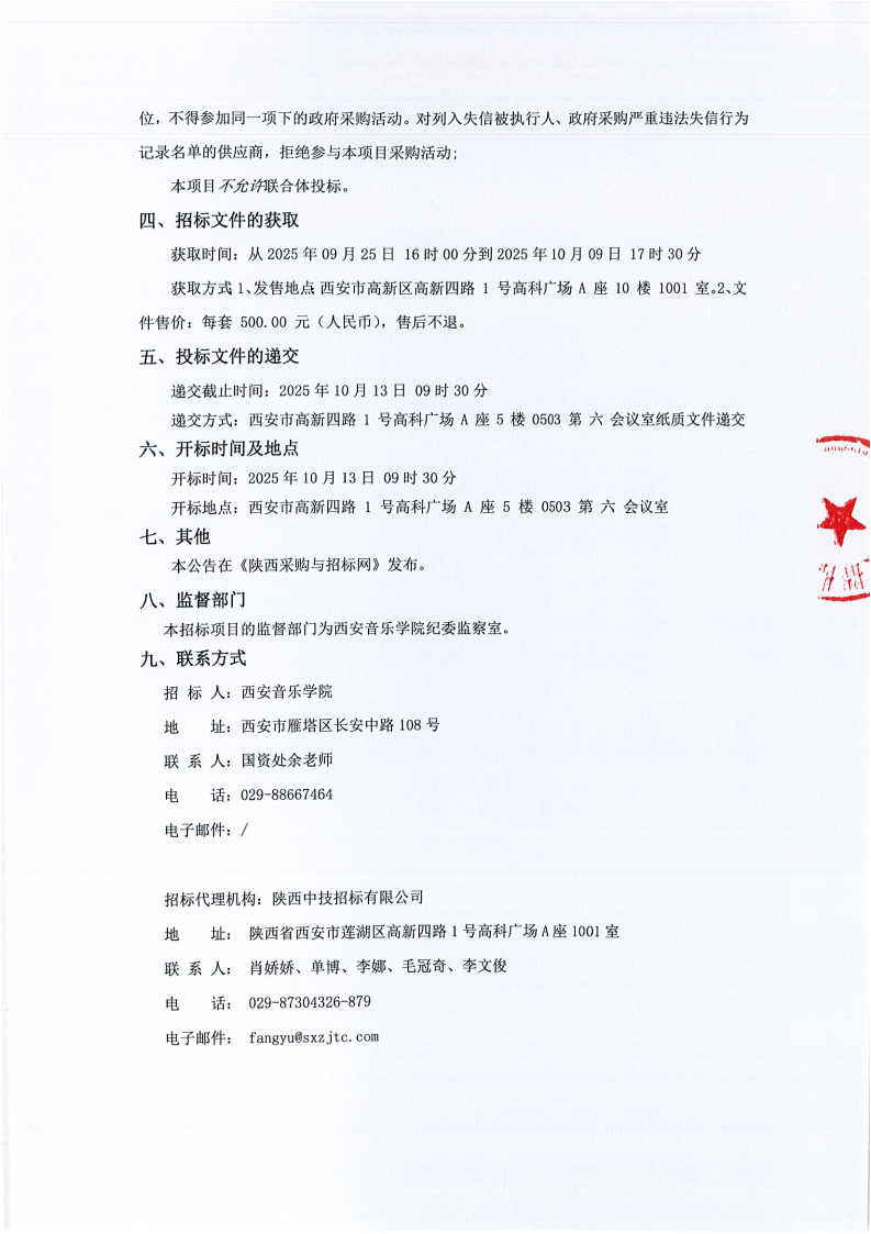 西安音乐学院四号教学楼教室改造建设--音响建设项目竞争性磋商公告(二次)