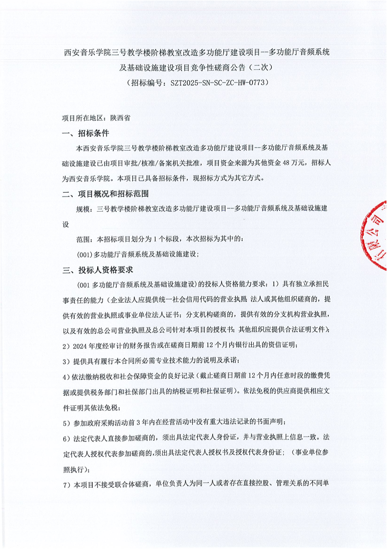西安音乐学院三号教学楼阶梯教室改造多功能厅建设项目 --多功能厅音频系统及基础设施建设项目竞争性磋商公告(二次)