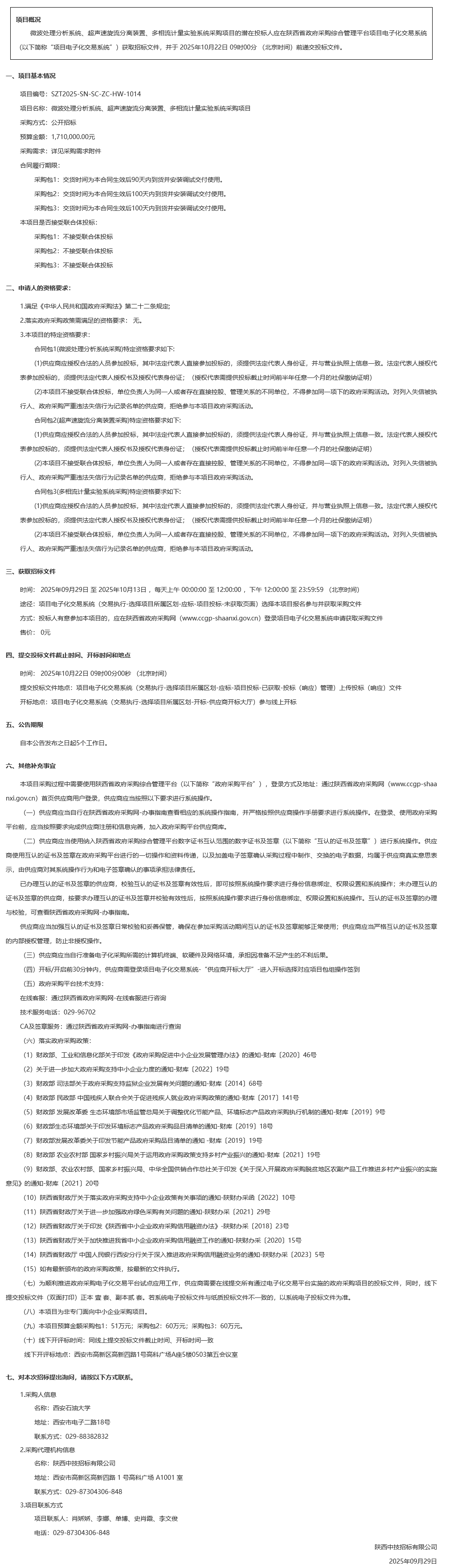 西安石油大学微波处理分析系统、超声速旋流分离装置、多相流计量实验系统采购项目招标公告