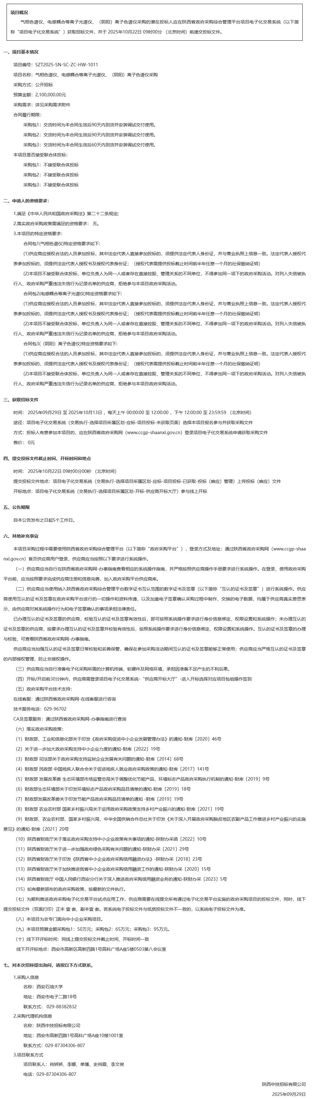 西安石油大学气相色谱仪、电感耦合等离子光谱仪、(阴阳)离子色谱仪采购项目招标公告