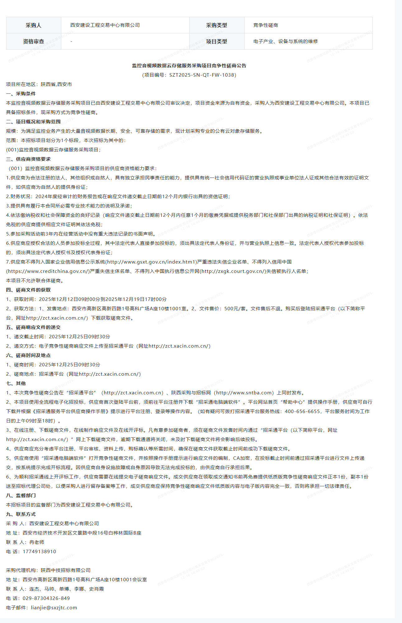 监控音视频数据云存储服务采购项目竞争性磋商公告