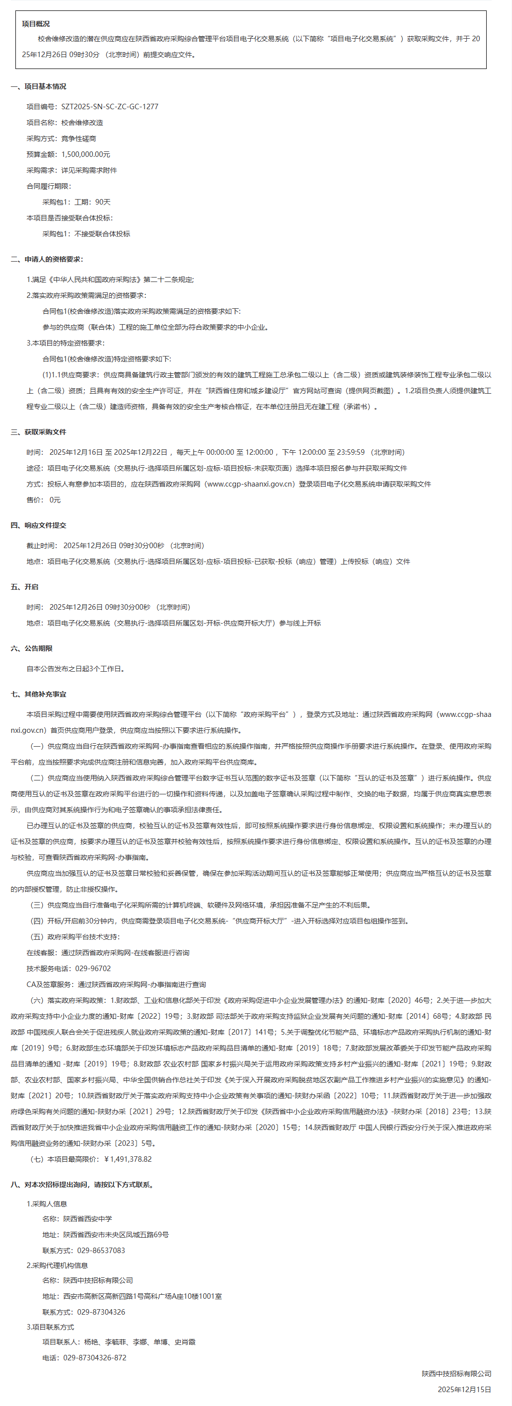 陕西省西安中学校舍维修改造竞争性磋商公告