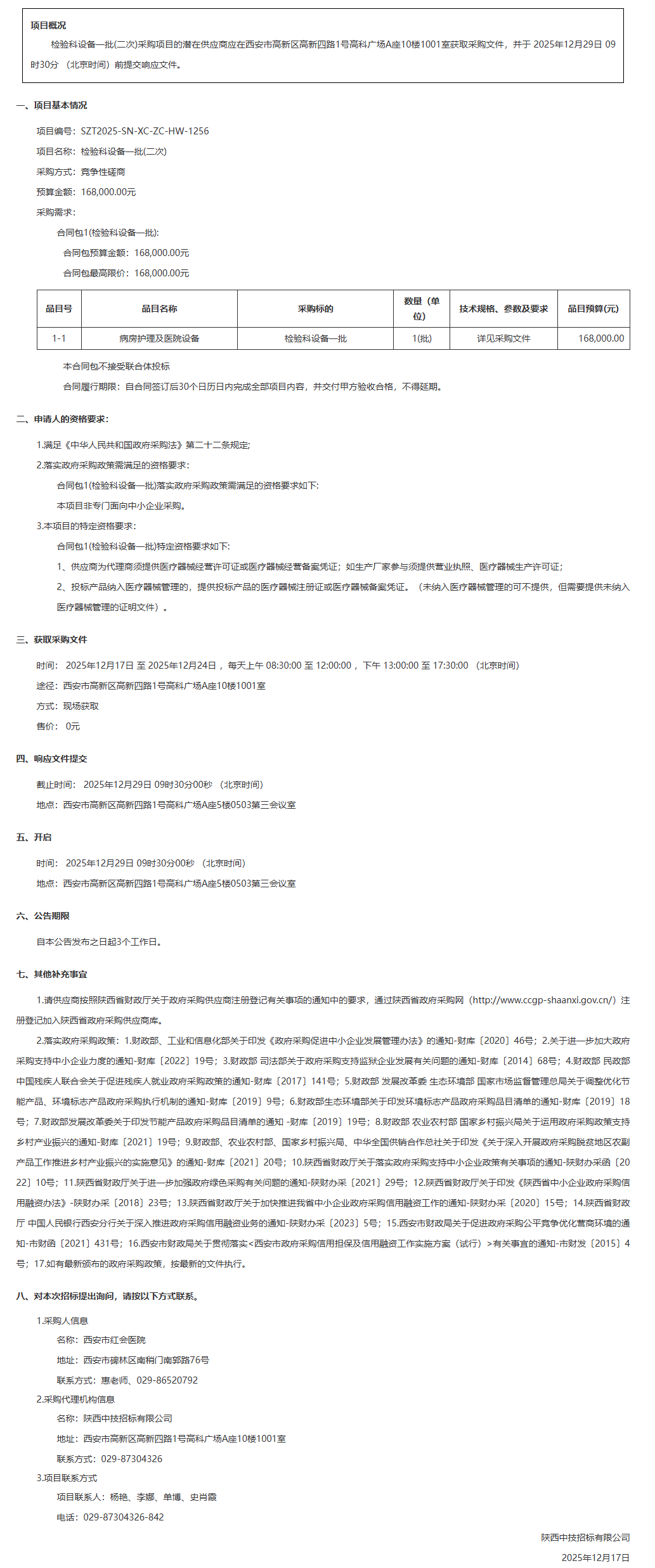 西安市红会医院检验科设备一批(二次)竞争性磋商公告