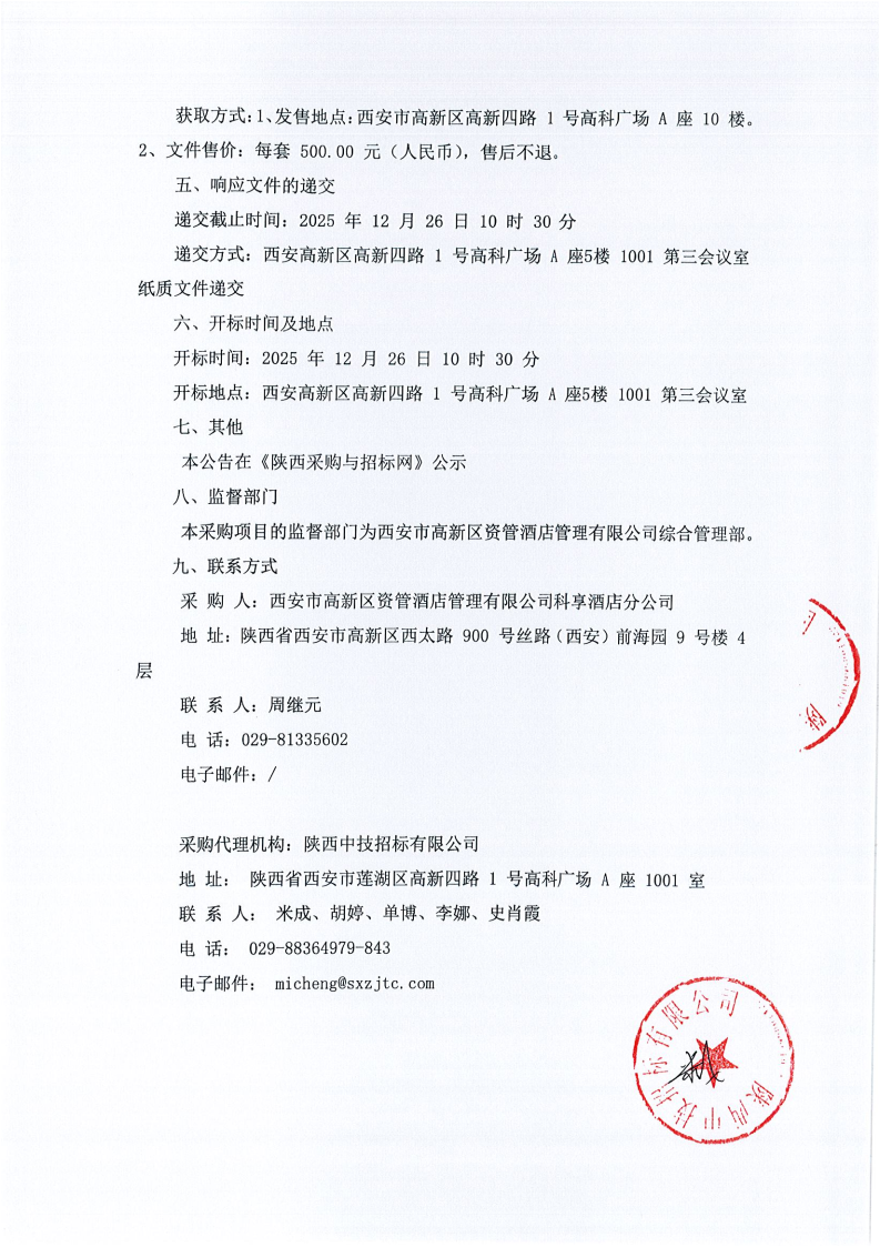 西安高新区福朋喜来登酒店及会议中心小时工服务外包谈判采购谈判公告