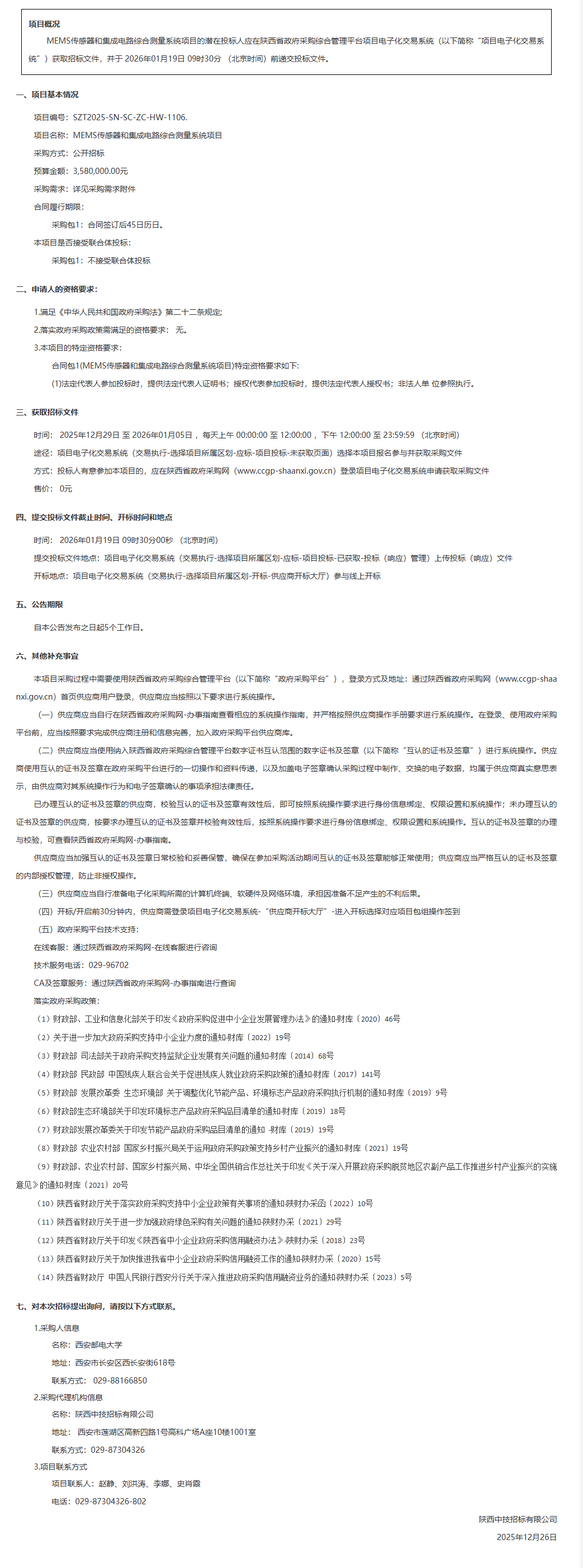 西安邮电大学MEMS传感器和集成电路综合测量系统项目招标公告