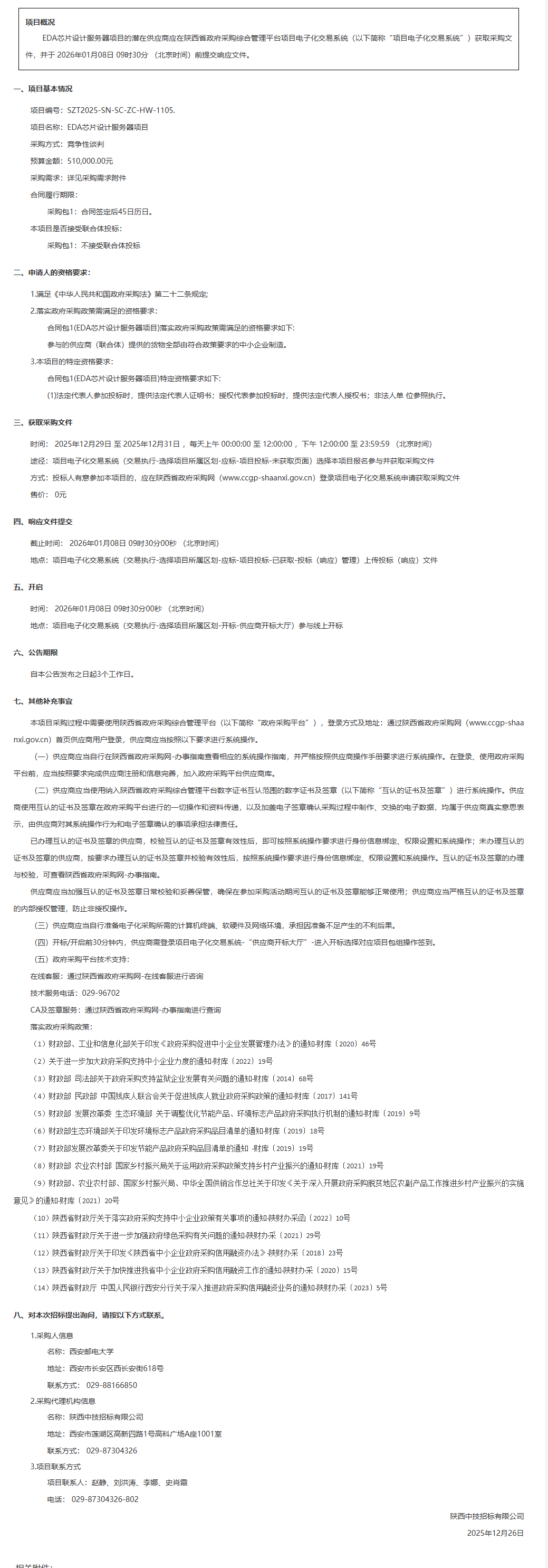 西安邮电大学EDA芯片设计服务器项目竞争性谈判公告