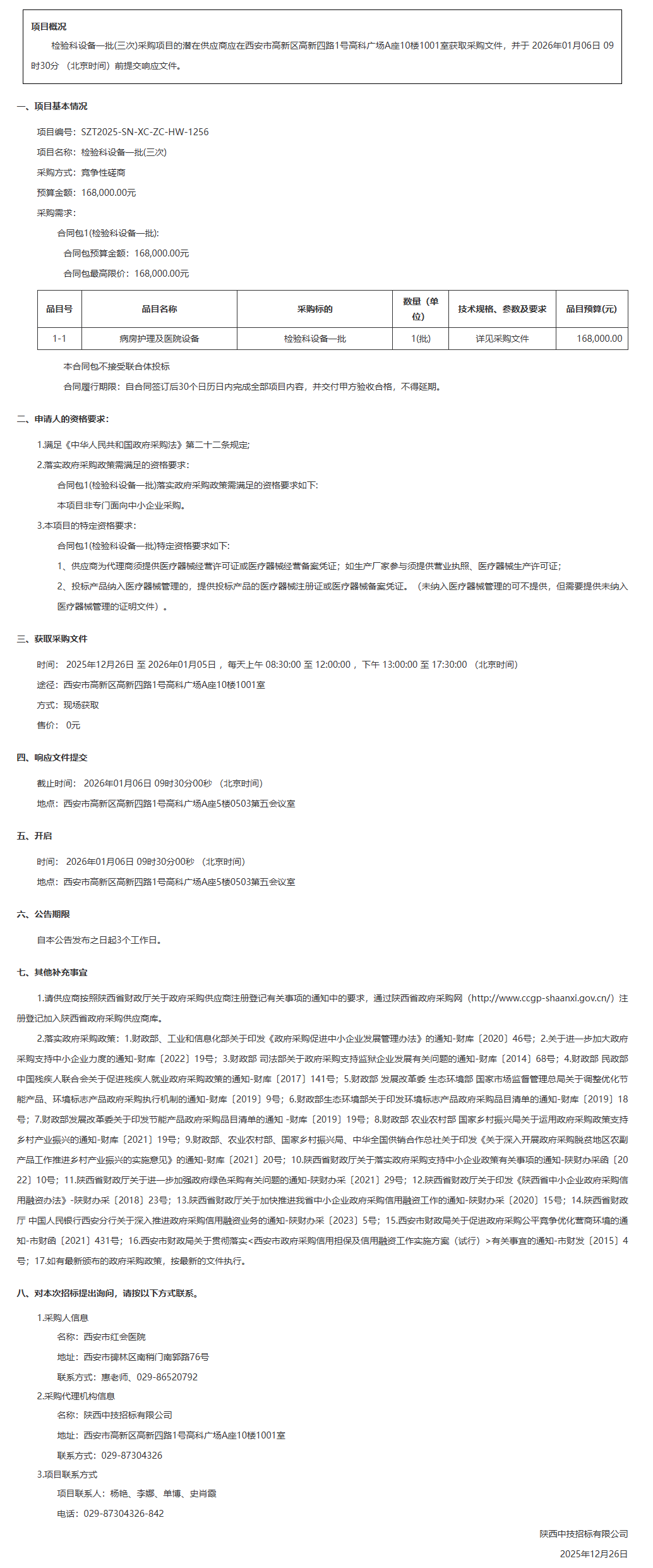 西安市红会医院检验科设备一批(三次)竞争性磋商公告