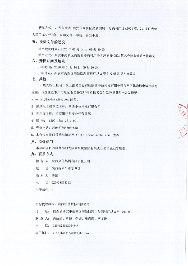 陕西兴化集团有限责任公司、陕西延长石油兴化化工有限公司2026年物资杂品采购项目谈判采购公告