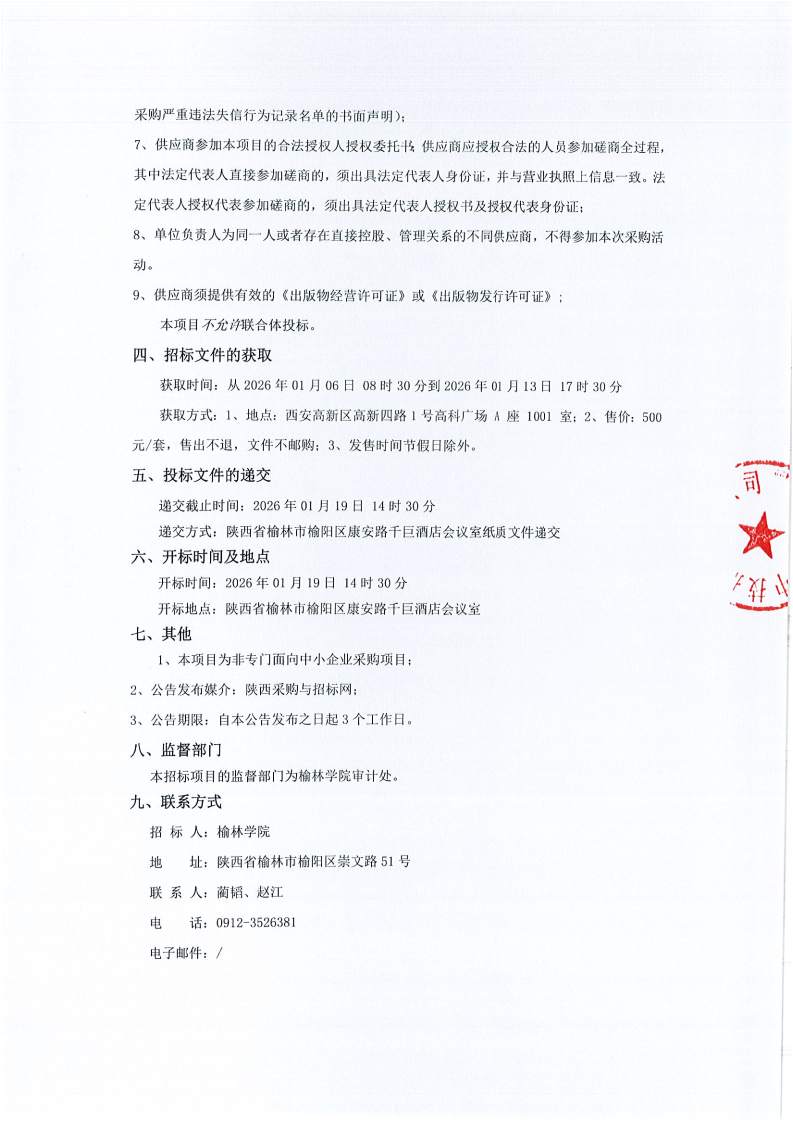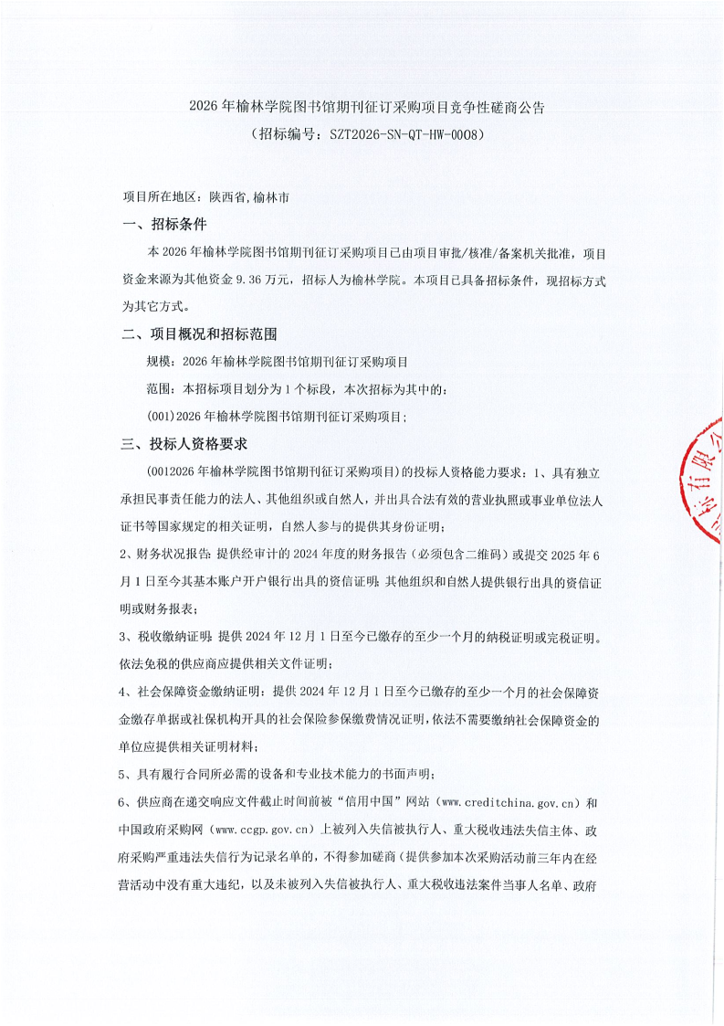 2026年榆林学院图书馆期刊征订采购项目竞争性磋商公告
