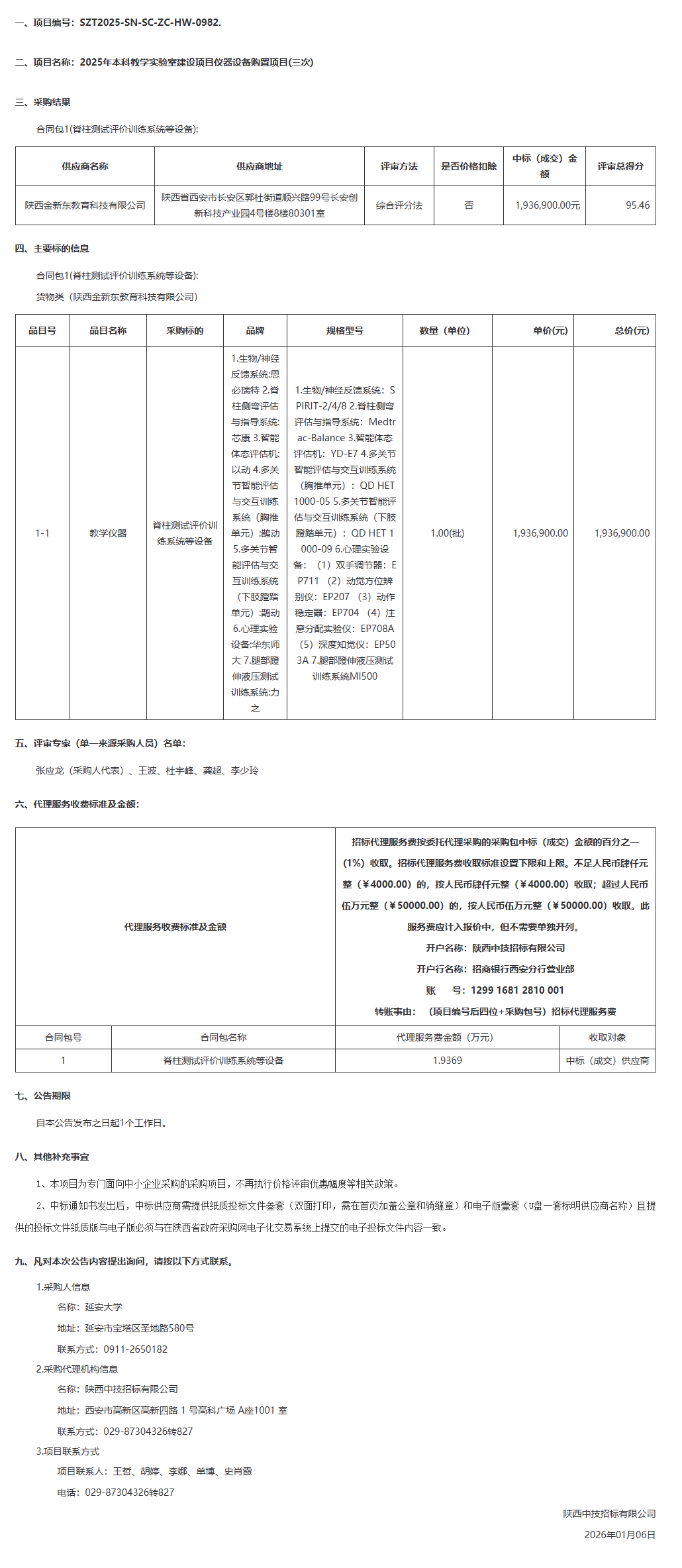 延安大学2025年本科教学实验室建设项目仪器设备购置项目(三次)中标(成交)结果公告