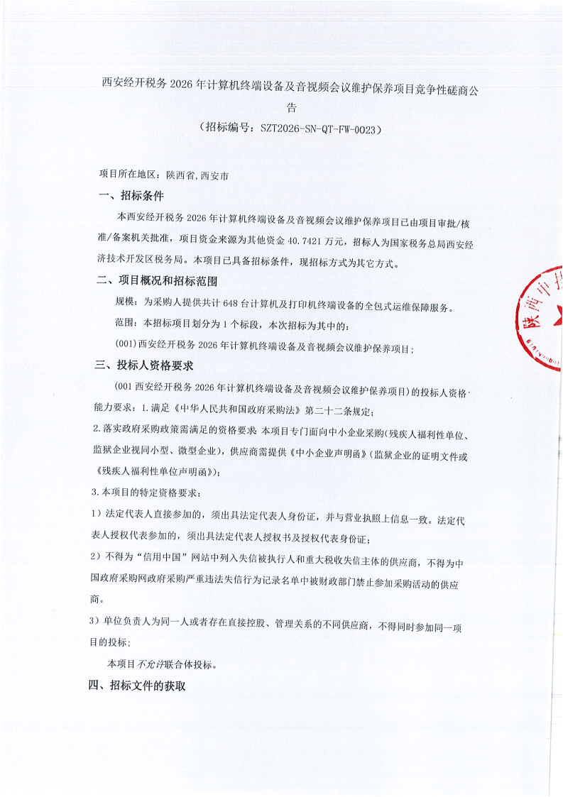 西安经开税务2026年计算机终端设备及音视频会议维护保养项目竞争性磋商公告