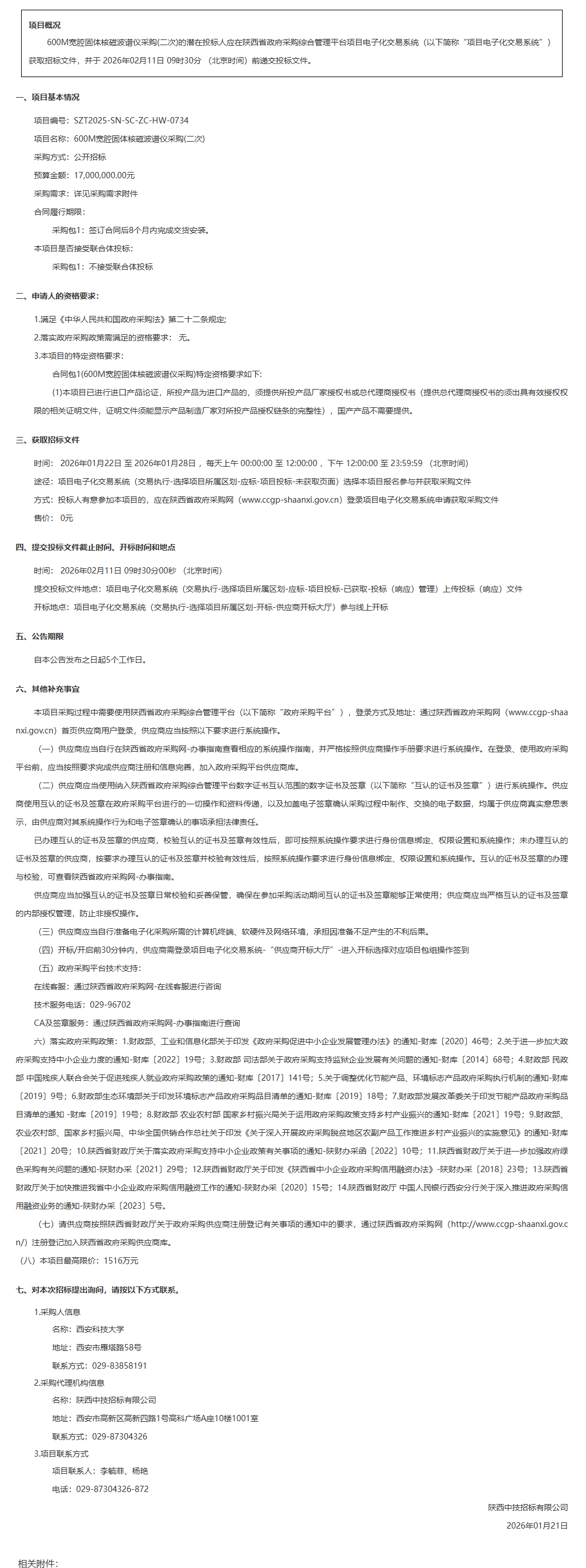 西安科技大学600M宽腔固体核磁波谱仪采购(二次)招标公告