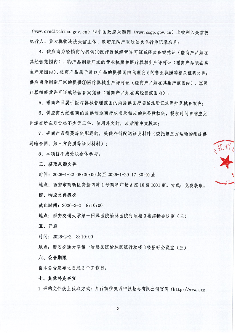 西安交通大学第一附属医院榆林医院医用耗材采购项目-基础卫生材料-光电及辅助材料(二)(合同包1)院级磋商公告