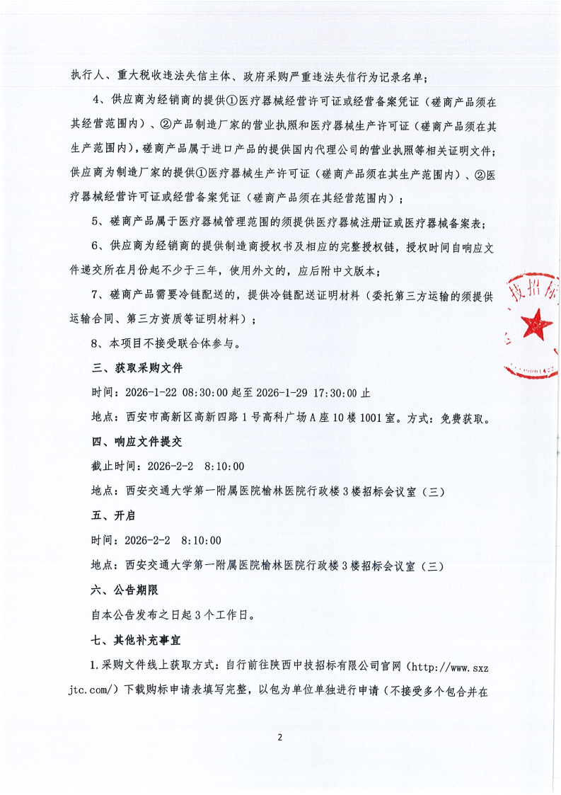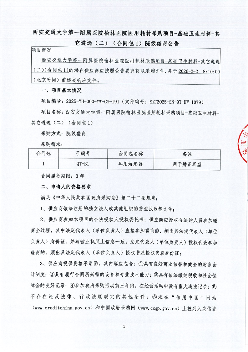 西安交通大学第一附属医院榆林医院医用耗材采购项目-基础卫生材料-其它遴选(二)(合同包1)院级磋商公告