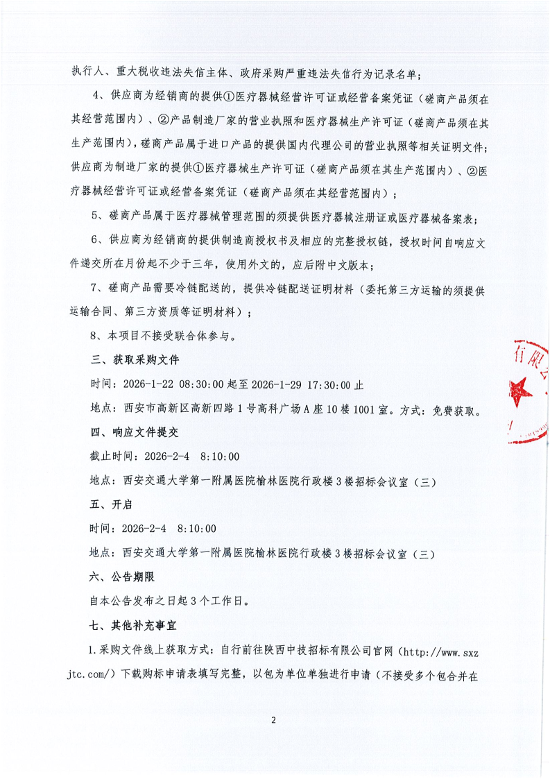 西安交通大学第一附属医院榆林医院医用耗材采购项目-基础卫生材料-消化道插管引流管遴选(二次)(合同包1-3)院级磋商公告