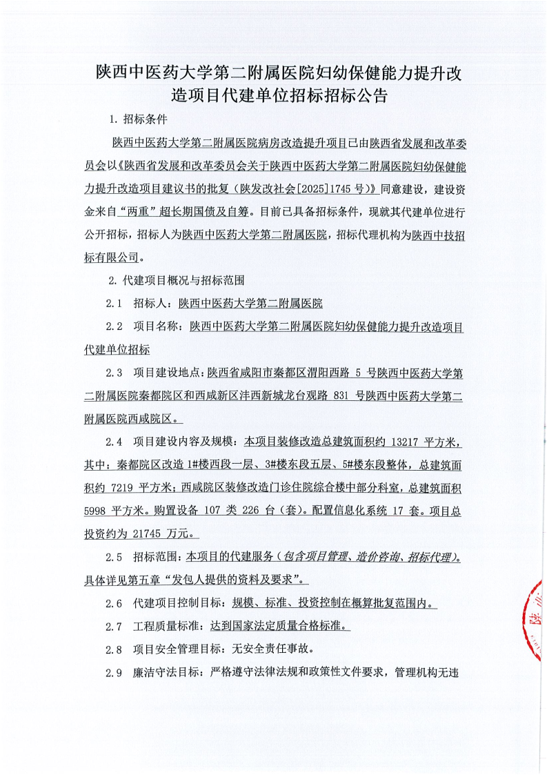 陕西中医药大学第二附属医院妇幼保健能力提升改造项目代建单位招标招标公告