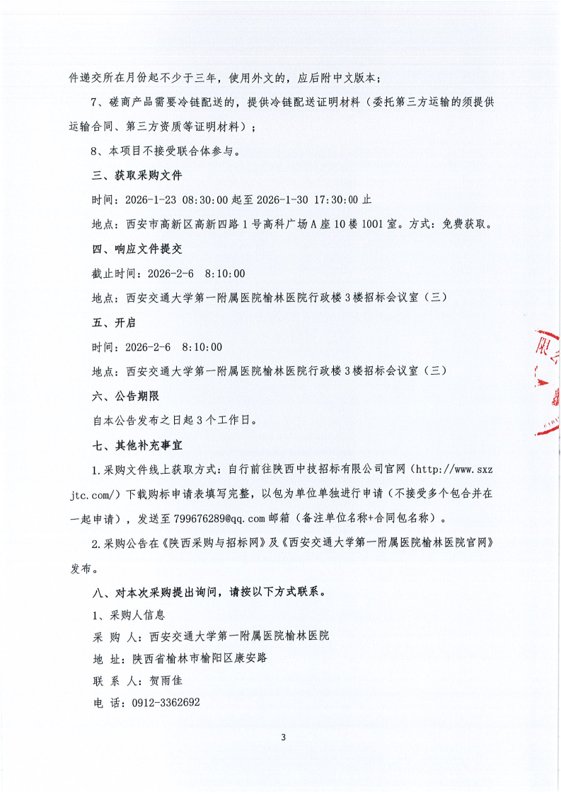 西安交通大学第一附属医院榆林医院医用耗材采购项目-基础卫生材料-导管、引流装置遴选(二次)(合同包8)院级磋商公告