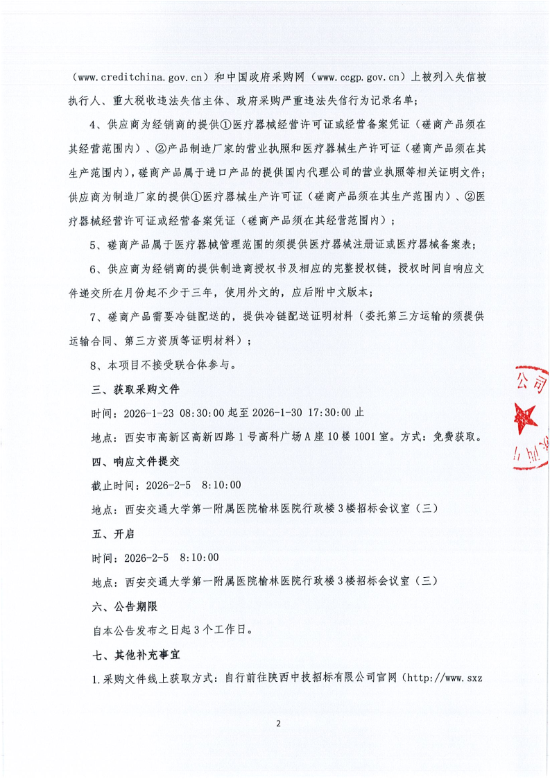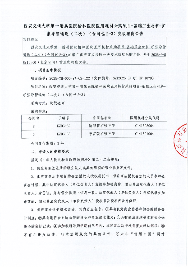 西安交通大学第一附属医院榆林医院医用耗材采购项目-基础卫生材料-扩张导管遴选(二次)(合同包2-3)院级磋商公告