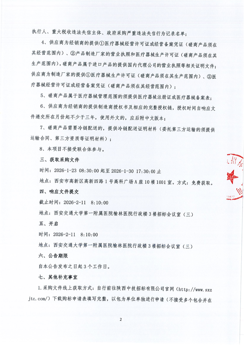 西安交通大学第一附属医院榆林医院医用耗材采购项目-基础卫生材料-专用吸引材料遴选(二次)(合同包2)院级磋商公告