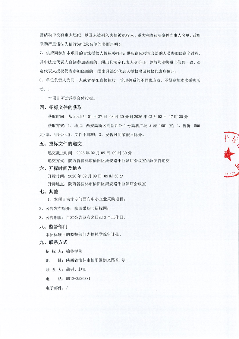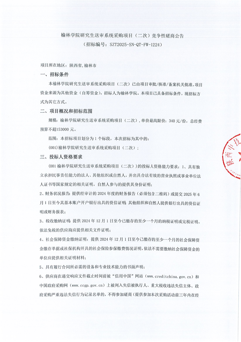 榆林学院研究生送审系统采购项目(二次)竞争性磋商公告