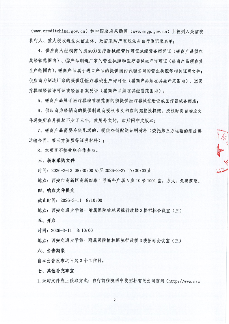 西安交通大学第一附属医院榆林医院医用耗材采购项目-医疗美容专用耗材-高频皮肤治疗仪-治疗头遴选(合同包12)院级磋商公告