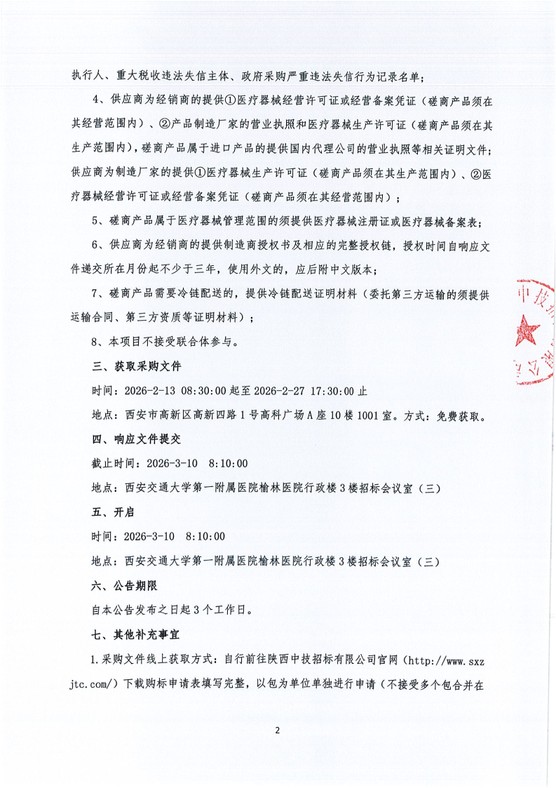 西安交通大学第一附属医院榆林医院医用耗材采购项目-医疗美容专用耗材-一次性使用无菌注射针遴选(合同包2)院级磋商公告