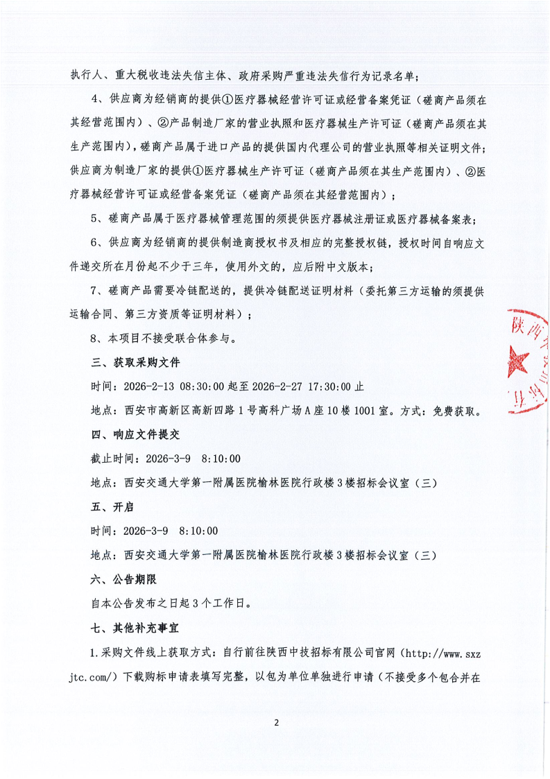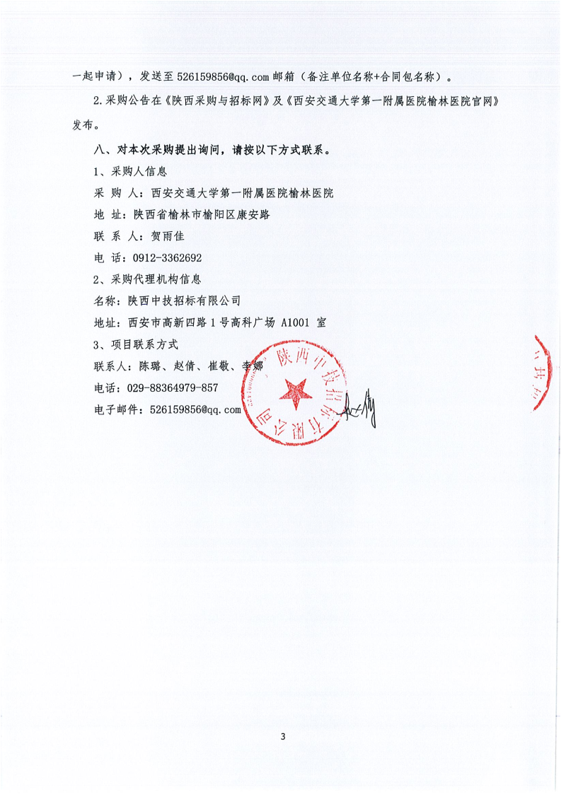 西安交通大学第一附属医院榆林医院医用耗材采购项目-医疗美容专用耗材-一次性吸引管遴选(合同包3)院级磋商公告