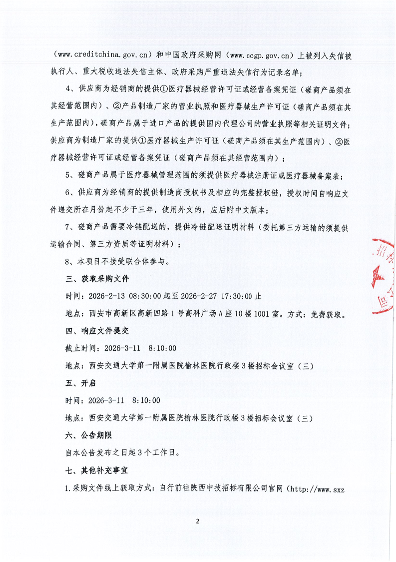 西安交通大学第一附属医院榆林医院医用耗材采购项目-基础卫生材料-导管、引流装置遴选(三次)(合同包8)院级磋商公告