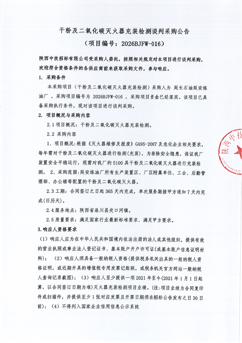 干粉及二氧化碳灭火器充装检测谈判采购公告