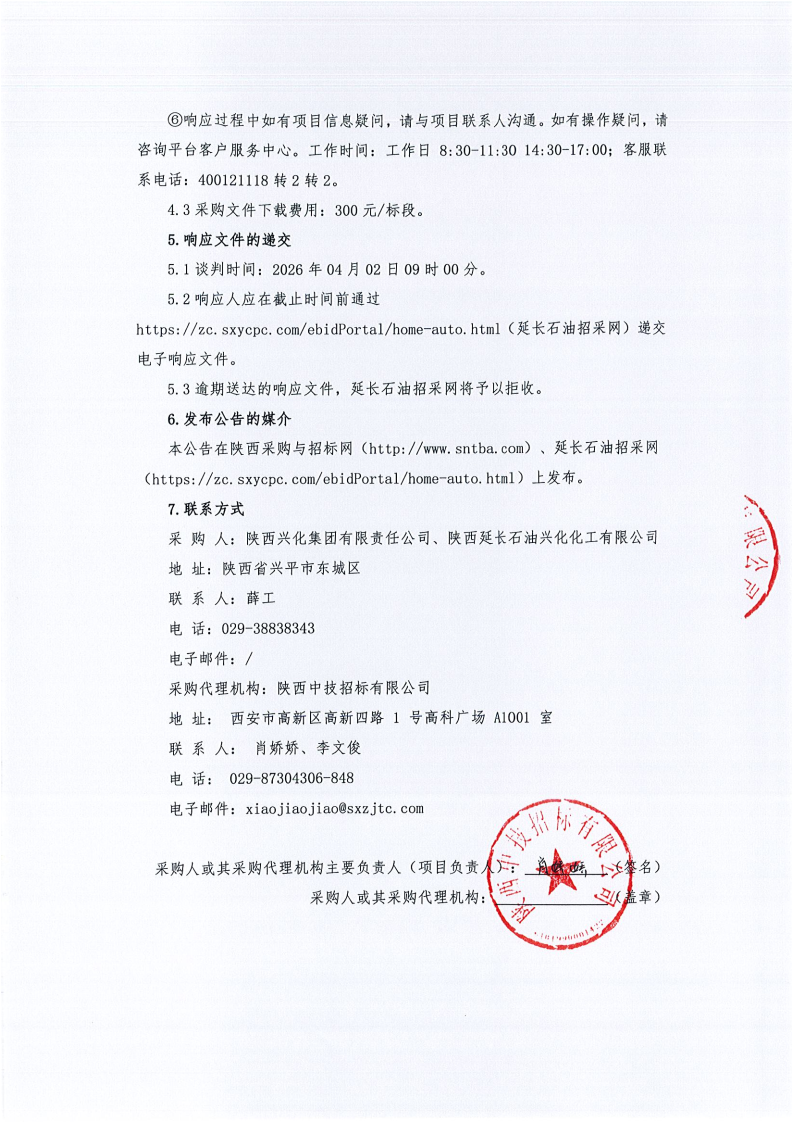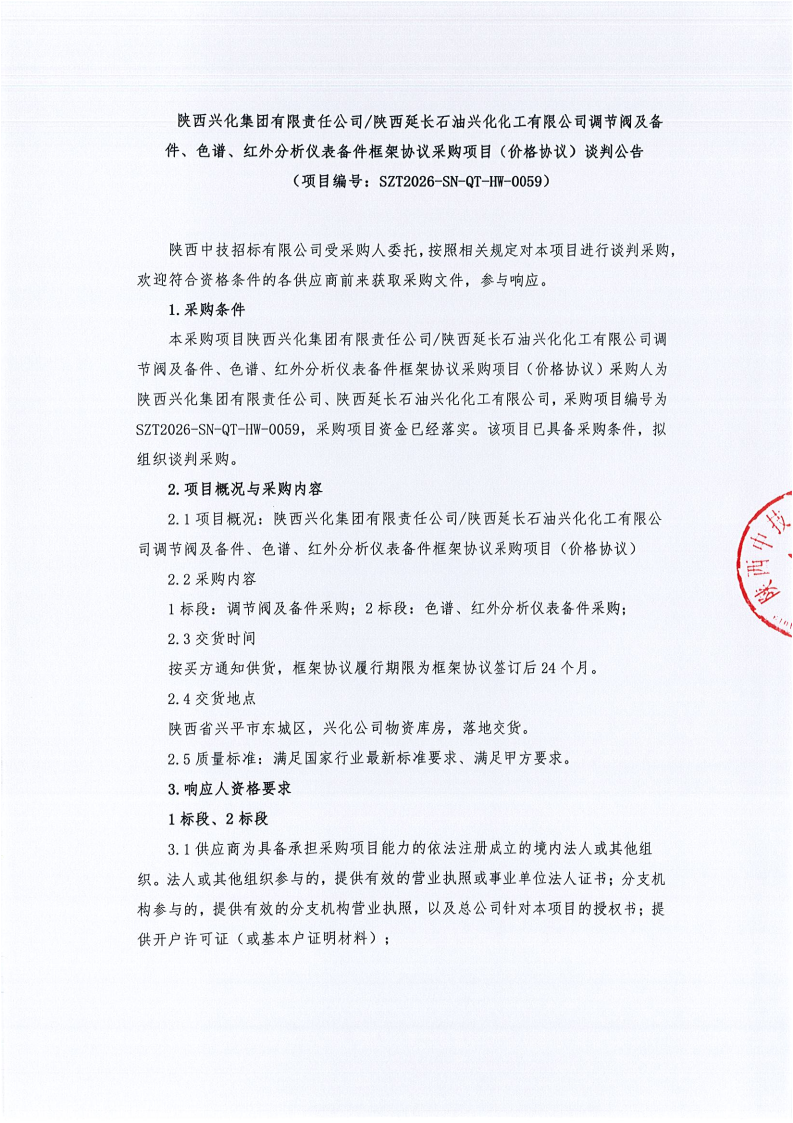 陕西兴化集团有限责任公司、陕西延长石油兴化化工有限公司控制阀门阀内件、烟气在线分析仪表备件框架协议采购项目(价格协议)谈判公告