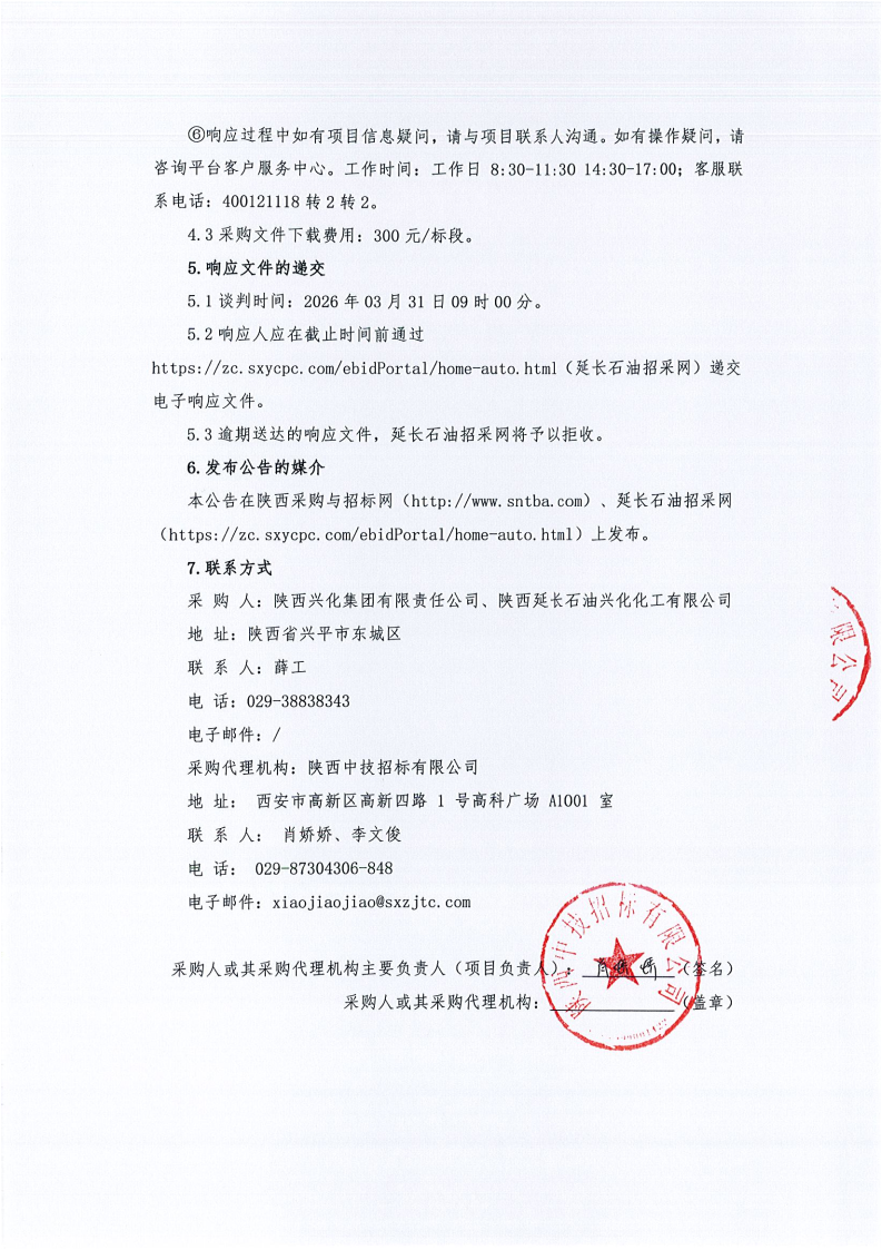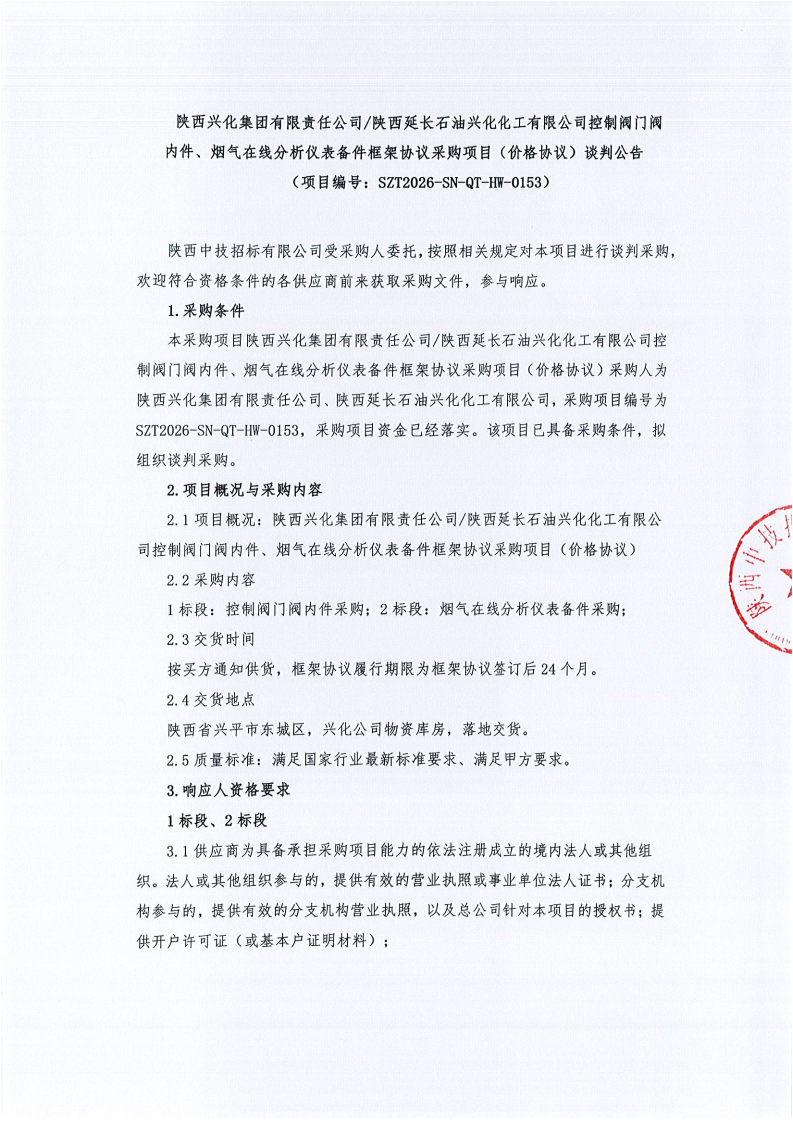 陕西兴化集团有限责任公司、陕西延长石油兴化化工有限公司控制阀门阀内件、烟气在线分析仪表备件框架协议采购项目(价格协议)谈判公告